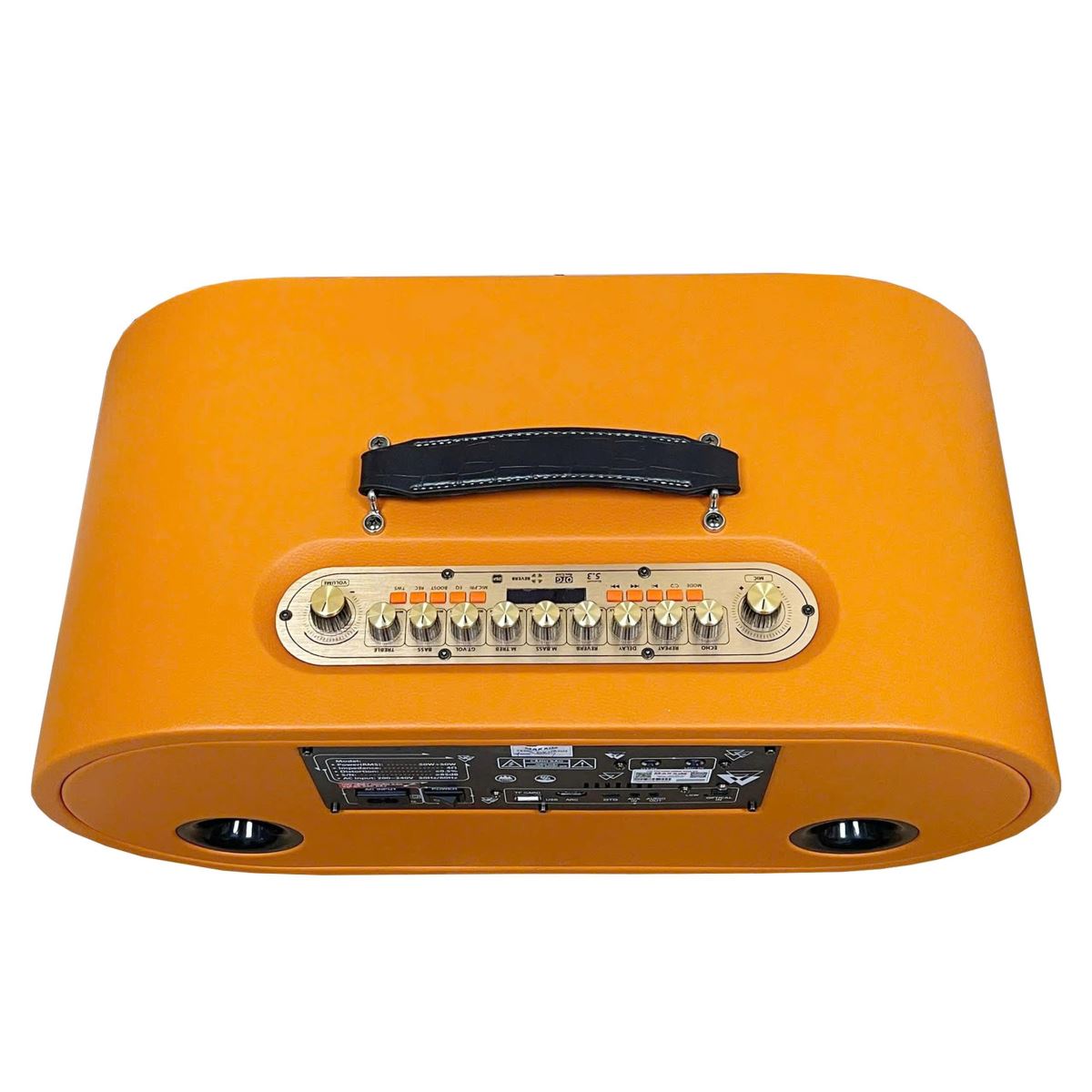 Makxim DYNAMIC M6 gây ấn tượng mạnh với vẻ ngoài bọc da màu cam cao cấp, không chỉ nổi bật mà còn thể hiện cá tính riêng biệt. Thiết kế gọn gàng với kích thước chỉ 54,5 x 27 x 24,7 cm, dễ dàng mang theo trong những buổi dã ngoại, tiệc tùng hay biểu diễn ngoài trời.
